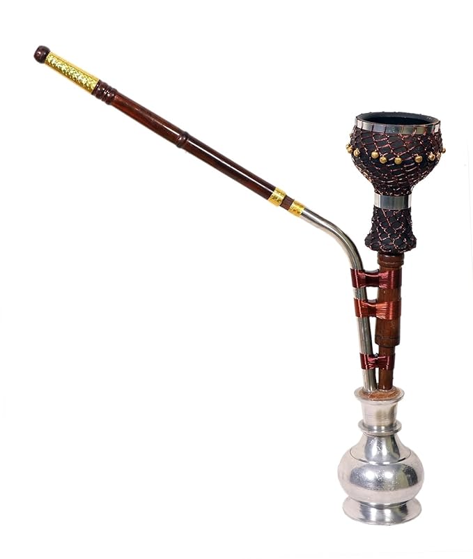 TRADITIONAL STYLE: Authentic Haryanvi design with mitti chillum, wooden stem with golden accents, and metallic fittings